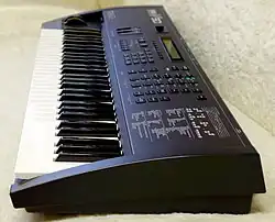 The Yamaha V50 is a hybrid music workstation introduced in 1989. It combines a sequencer, rhythm machine, an FM synthesis-based sound module and a MIDI keyboard.