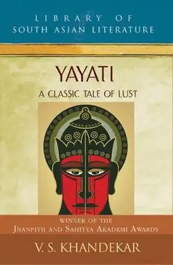 Yayati is a 1959 Marathi-language mythological novel by Indian writer V. S. Khandekar. One of Khandekar's best-known works, it retells the story of the mythological Hindu king, Yayati, from the Hindu epic the Mahabharata. The novel has multiple narrators, and poses several questions on the nature of morality. Scholars have analysed its hero, Yayati, as a representation of modern man. Accepted as classic of Marathi literature, Yayati has won several awards, including the Sahitya Akademi Award in 1960 and the Jnanapith Award in 1974.