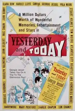 Yesterday and Today is a 1953 United Artists American compilation film produced and directed by Abner J. Greshler and narrated by George Jessel. The film consists mostly of brief clips from silent short films from the first decade of the 20th century. The film compiles footage from two previous British compilation films, Those Were the Days and Return Fare to Laughter, both 1951 products of Butcher's Film Service, interspersed with introductions and commentary by Jessel. However, many of the clips are misidentified.[1]