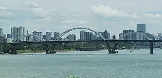 Zhuzhou (Chinese: 株洲; pinyin: Zhūzhōu, joo-joh),[3] formerly Jianning (建宁), is a prefecture-level city of Hunan Province, China, straddling the Xiang River southeast of the provincial capital, Changsha, and bordering Jiangxi province to the east. It is part of the "Greater Changsha Metropolitan Region, also known as Changzhutan Golden Triangle" (comprising the cities of Changsha, Zhuzhou and Xiangtan). The city has jurisdiction over five counties (Yanling, Chaling, Youxian, Liling, Zhuzhou) and four districts (Hetang, Lusong, Shifeng and Tianyuan, a high-tech industrial development zone), and covers an area of 11,420 km2 (4,410 sq mi).[4]