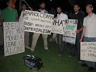 On November 13, 2008, violence erupted between ZFA and the Students for Justice in Palestine at an Israel Liberation Week event taking place at UC Berkeley.[3] The incident, which took place during a ZFA concert featuring Black, Jewish and Mexican hip hop artists promoting freedom for Israel from Western pressure and foreign influence,[4] began when anti-Israel students unfurled Palestinian flags from a balcony overlooking the concert stage. ZFA activists attempted to remove the flags and a fight broke out between the two organizations. While both groups accused the other of initiating the violence, both agreed that ZFA prevailed in the actual fight.[5] Following the incident, SJP members told Berkeley police that pro-Israel students made racial slurs against Arab students during the fight[6][7] but the charge was denied by ZFA leaders,[8] who view both themselves and Arabs as belonging to the same Semitic race.